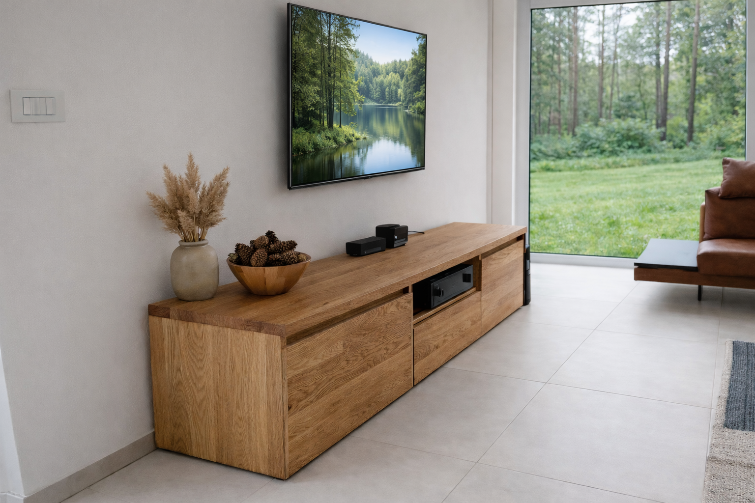 TV-Lowboard aus massivem Eichenholz – natur