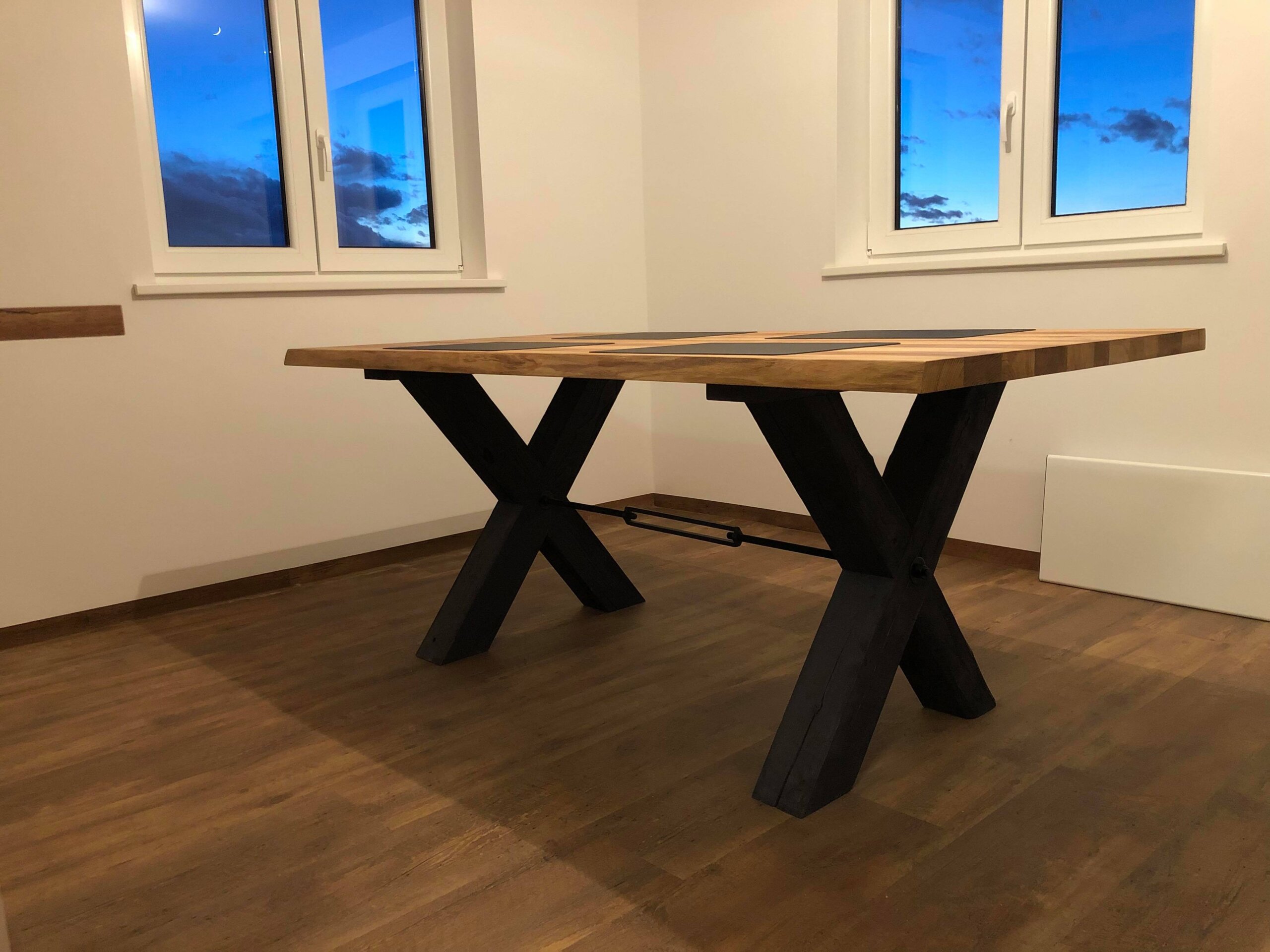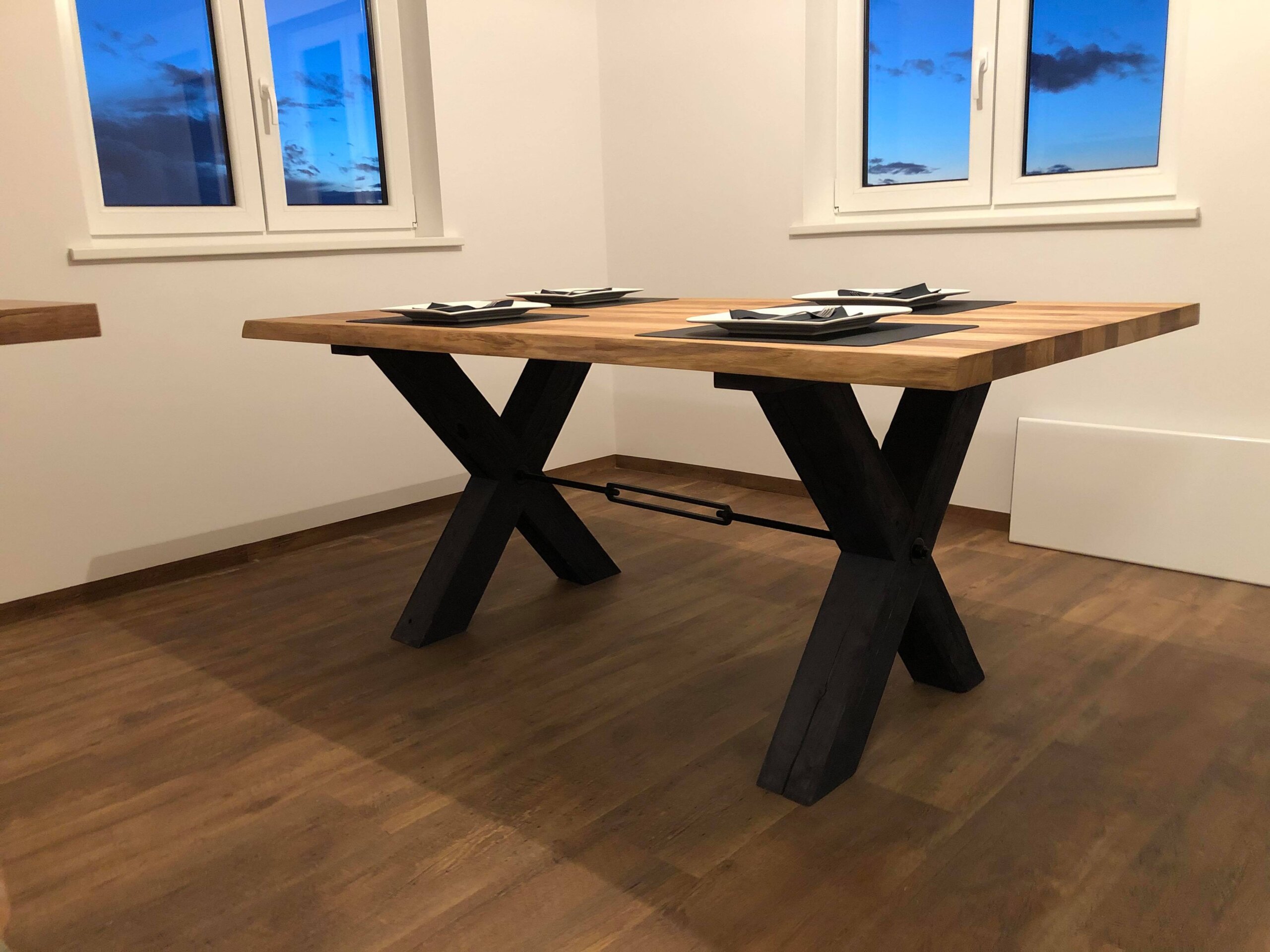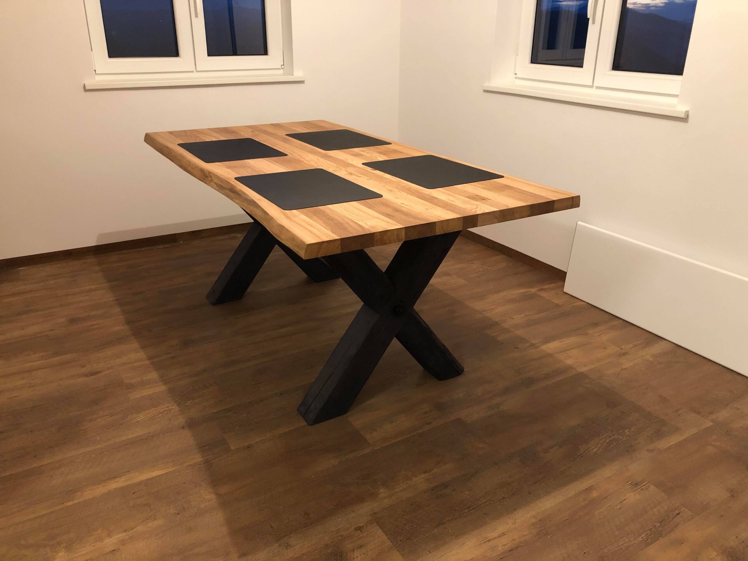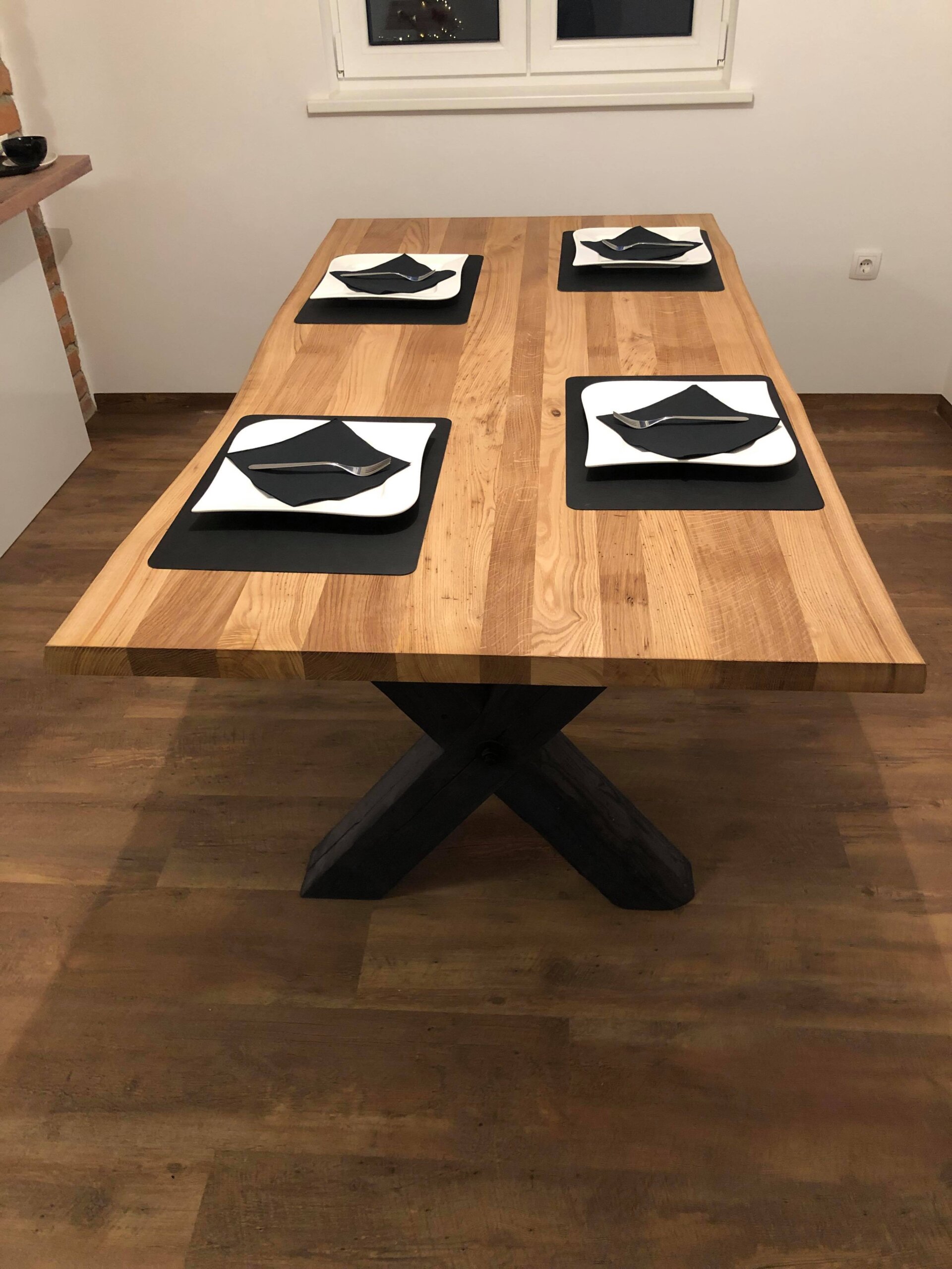 **X-Leg Solid Oak Table 180 × 90 cm – Natural Live Edges & Cross Base Sale –5%: now only 1,390 EUR**